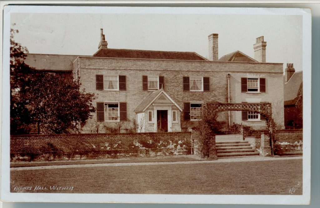 A postcard (above) of Blunts Hall dated 1908 shows the front of the Hall after extensive landscaping to create different levels around the garden. Changes in height were accentuated by the gravel sweep laid to the front of the house surrounded by a red brick wall with formal steps leading down to the front lawns.