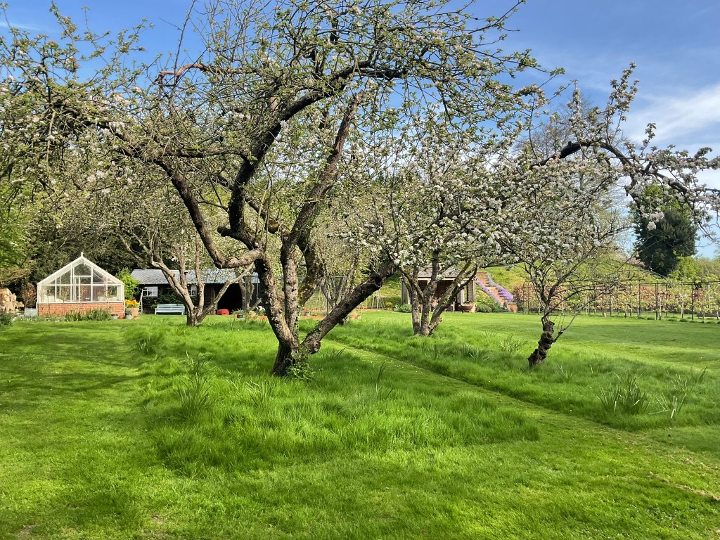 Some of the original trees have survived in our Orchard and have a profusion of blossom in spring and fruit in summer. The varieties were introduced by local fruit nurserymen William Seabrook & Sons at their Boreham site from the late 1800s. We have Monarch, an old variety of cooking apple introduced in 1888, and Acme, a late red dessert apple in 1944.